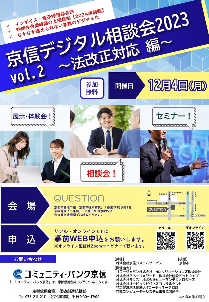 2023年12月4日に京都信用金庫様主催の<京信デジタル相談会2023 vol.2 ~法改正対応編~>が開催されました。