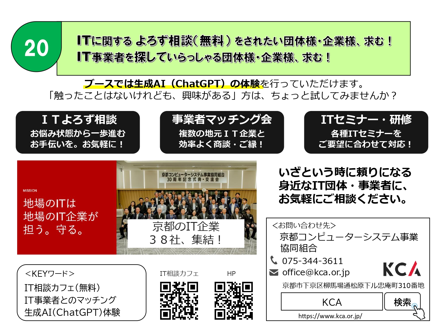 KCAも第2部 異業種連携交流会に参加し、皆さまと直接お話できることを楽しみにしております。